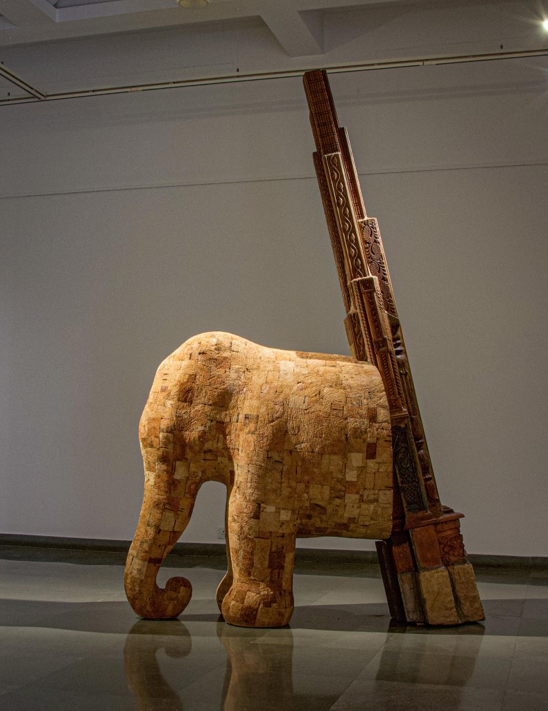 ‘VARAHA’ Plastic waste, paper pulp, cement dust, epoxy Size: 28″ X 44″ X 19″ Year: 2023